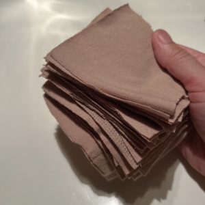 元々、キッチンの棚にストックして、ちょっとした汚れを拭くのに使っていた布きれ。
